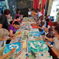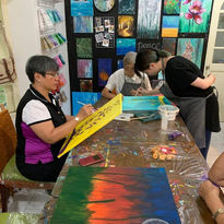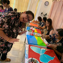 Every month, the OSK ArtKnights get together, to paint with the guidance of ArtGuides for gifting to Homes.